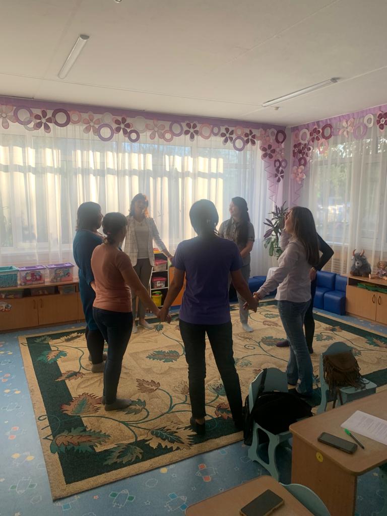 В рамках реализации проекта "Yндестiк," с целью усиления социального партнёрства, а также оптимизации детско-родительских отношений, на родительских собраниях был проведён тренинг:"Хоровод дружбы!". Родители групп:"Дельфин","Тамшы","Малыш","Ертегi" были активными участниками, проявили интерес и принятие,а также поделились опытом в налаживании эмоционального и тактильного контакта с детьми,умением понимать друг-друга и делиться опытом с другими родителями. Яркие и положительные эмоции,отзывы родителей,свидетельствуют о результативности проведённого тренинга! Педагог-психолог: Каткенова Е.С.