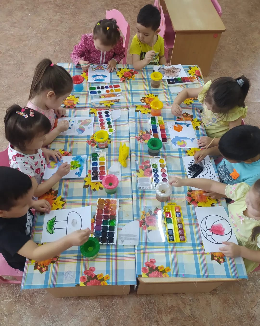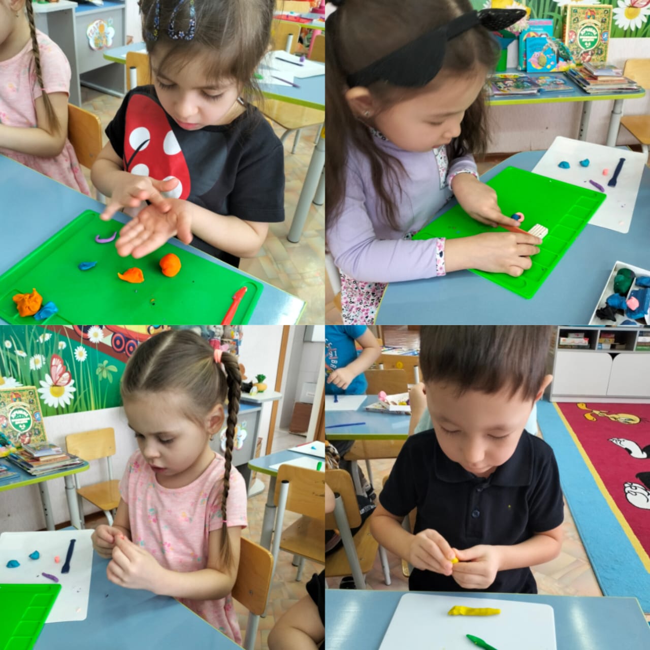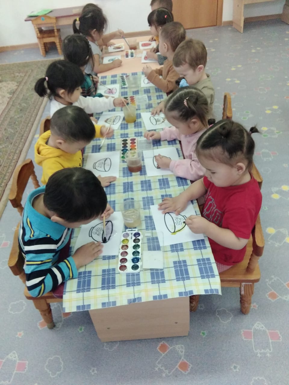 "Көбелек" тобының балаларды да, сурет салғанды, мүсіндегенді және жарсырғанды ұнатады. Күнделікті күн тәртібі бойынша осы 3 бағытты қамтып отырады.