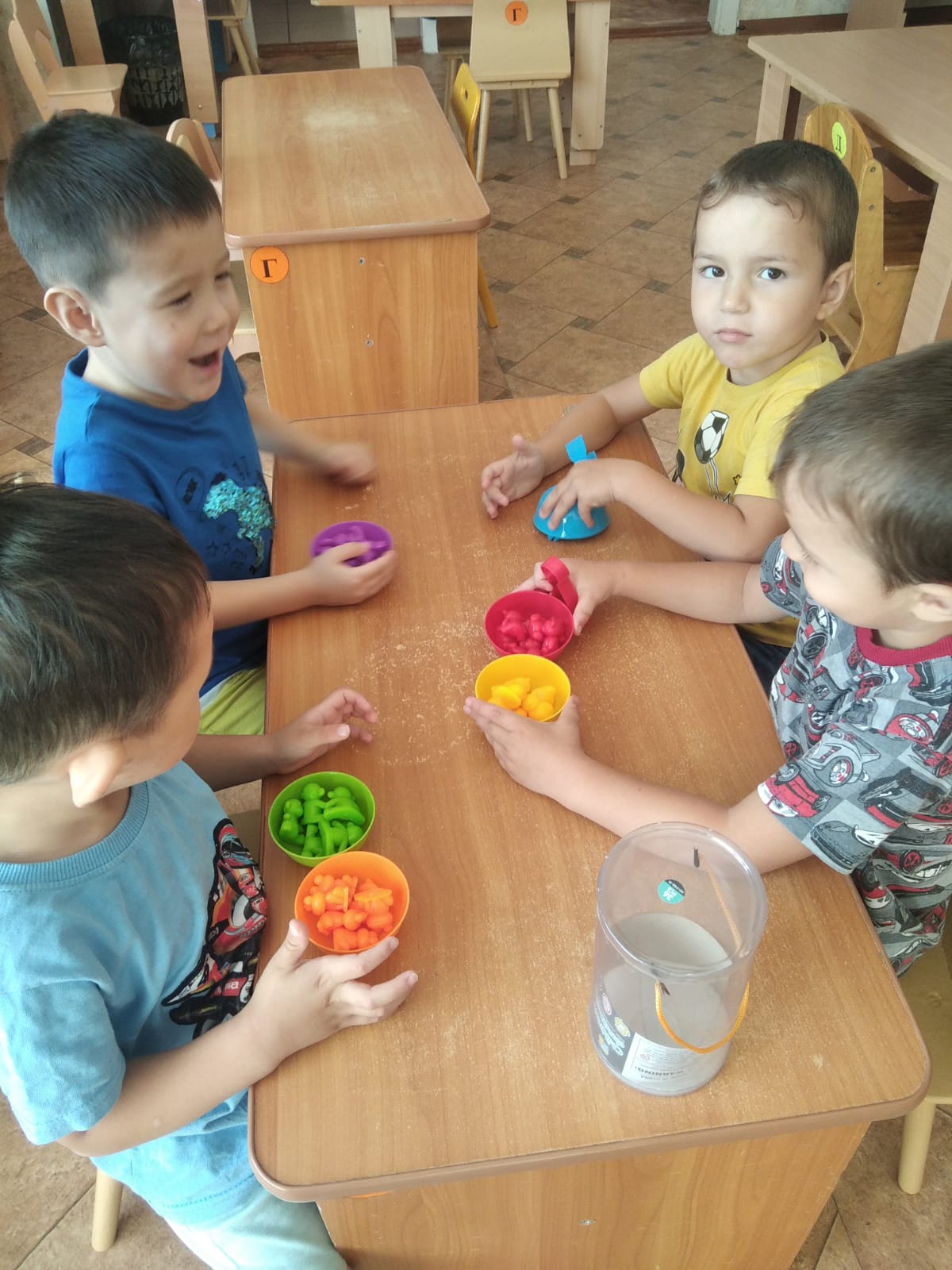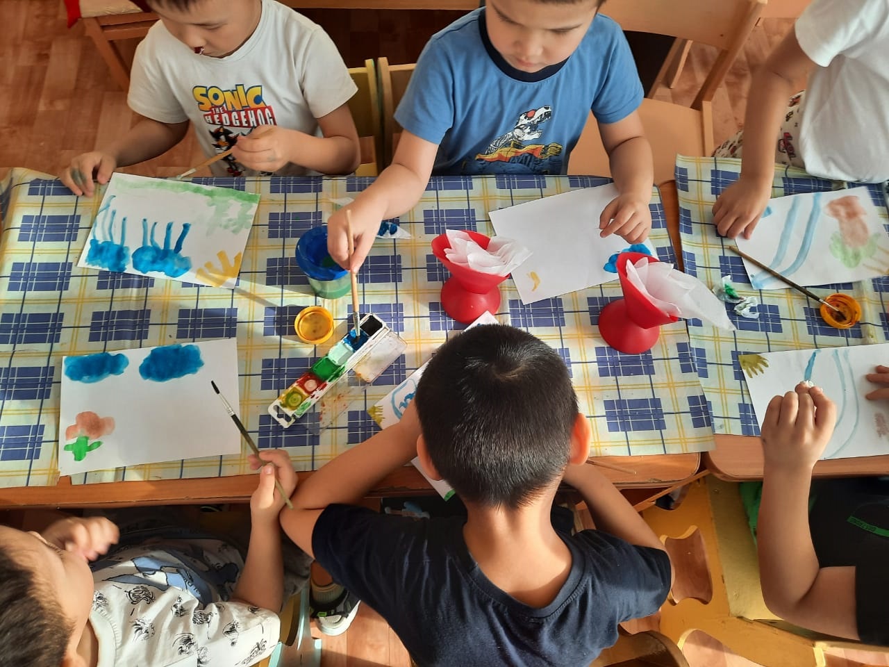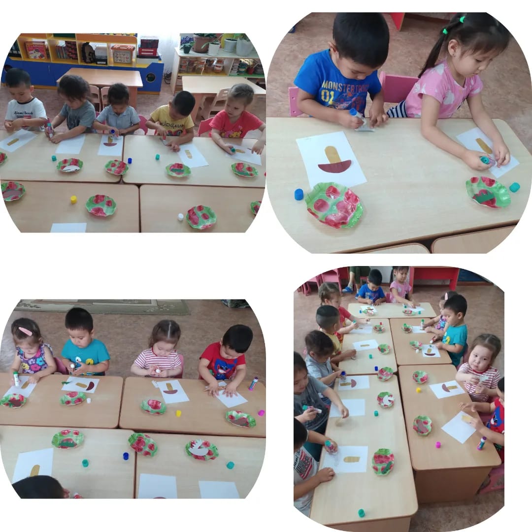 "Көбелек" тобының балаларды да, сурет салғанды, мүсіндегенді және жарсырғанды ұнатады. Күнделікті күн тәртібі бойынша осы 3 бағытты қамтып отырады.
