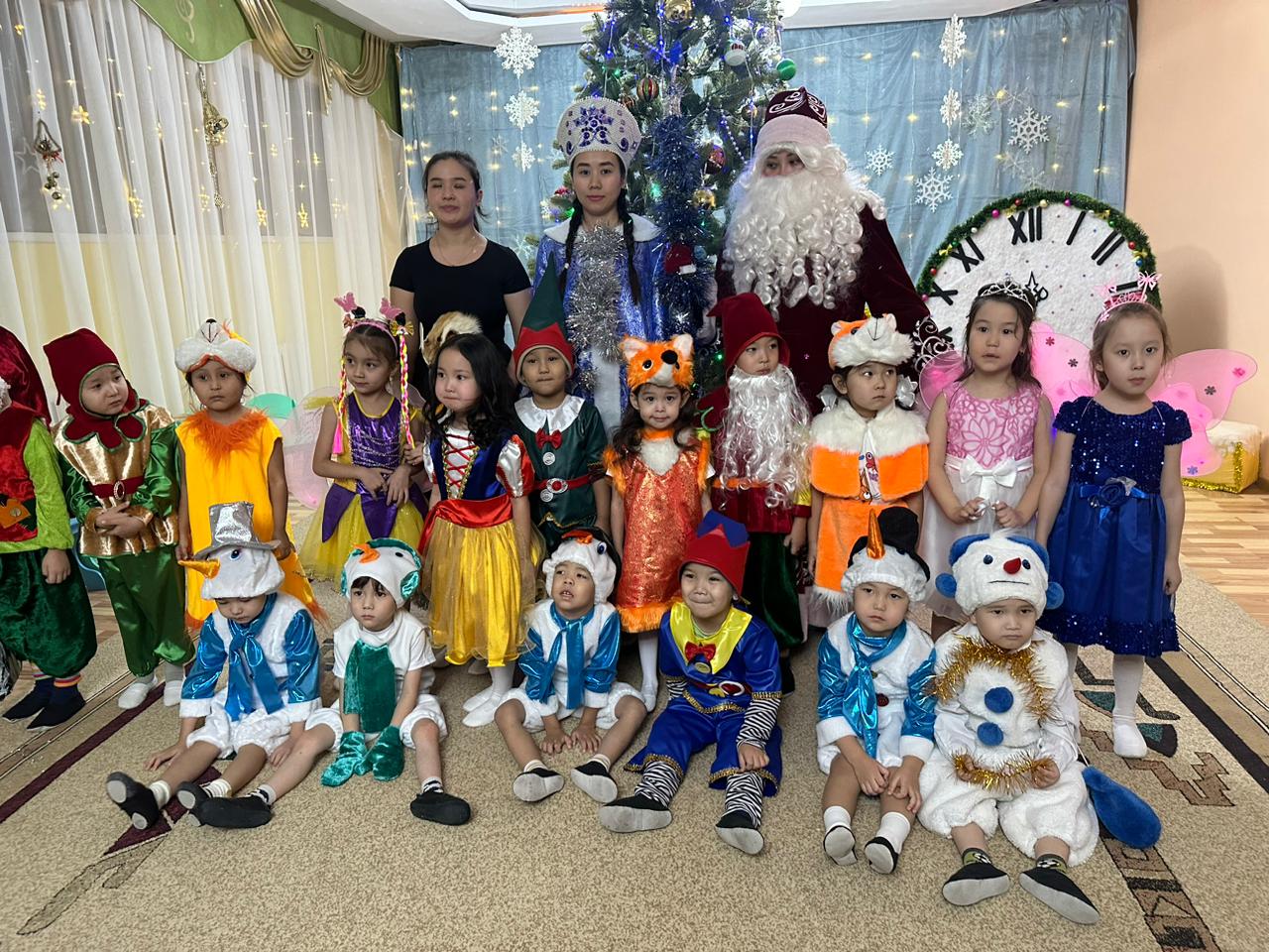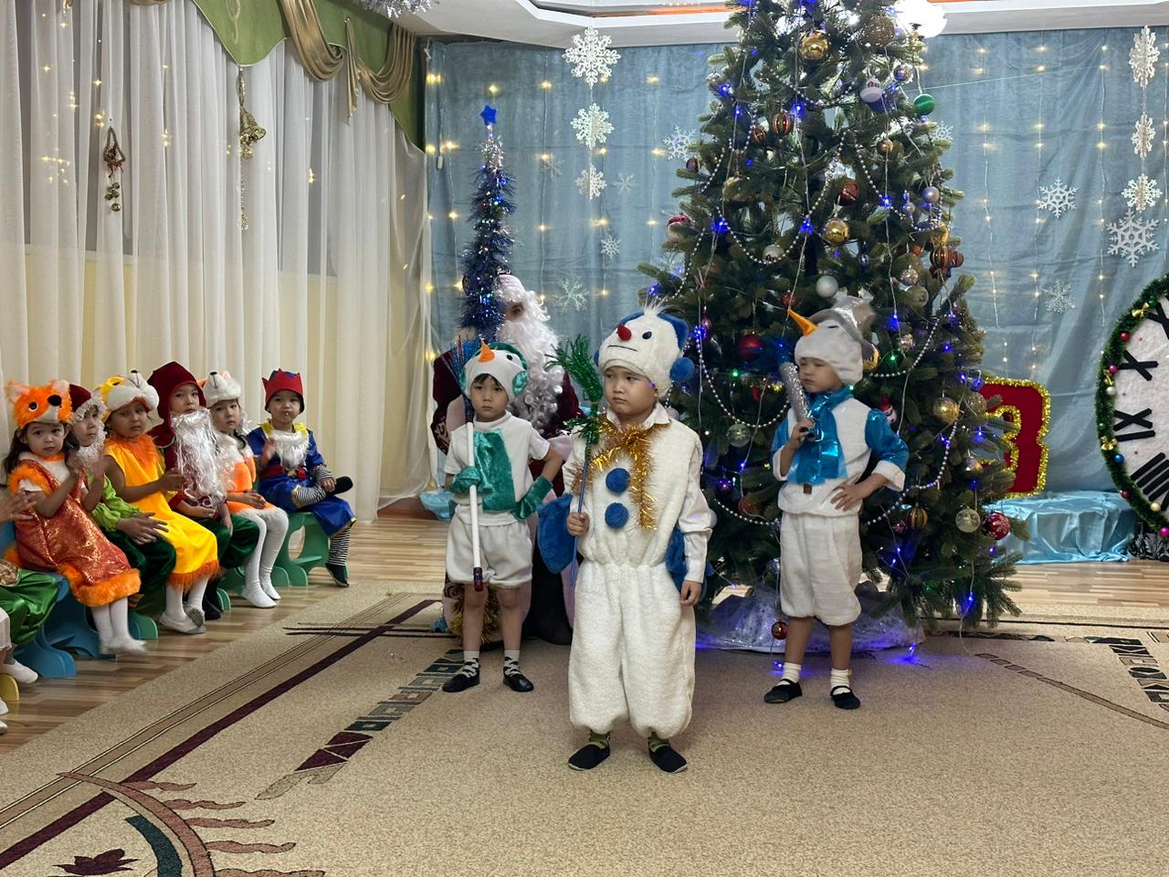 27.12.23ж."Ертегі" тобнда «Құтты болсын, Жаңа жыл!» атты ертеңгілік өтті.Балаларға мерекелік көңіл күй тудыру; шыршаның қалай әдемі де сәнді безендірілгеніне, балалардың Аязатаның, Ақшақардың,Сайқымазақ киімдеріне назар аударту; көңілді ойындар ойнату, достық қарым - қатынас ояту, бірлескен ойындар . Тәрбиешілер: Есенеева М.Б.,Ергалиева Б.Г. музыка жетекшісі: Ләзатт Аралбаевна.