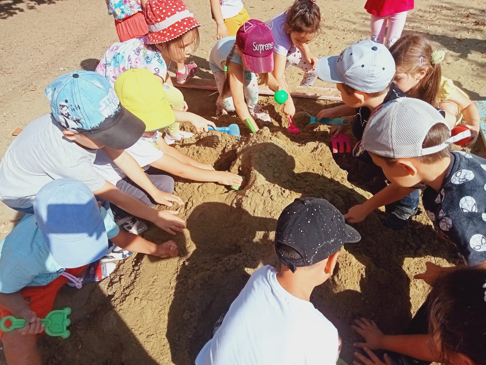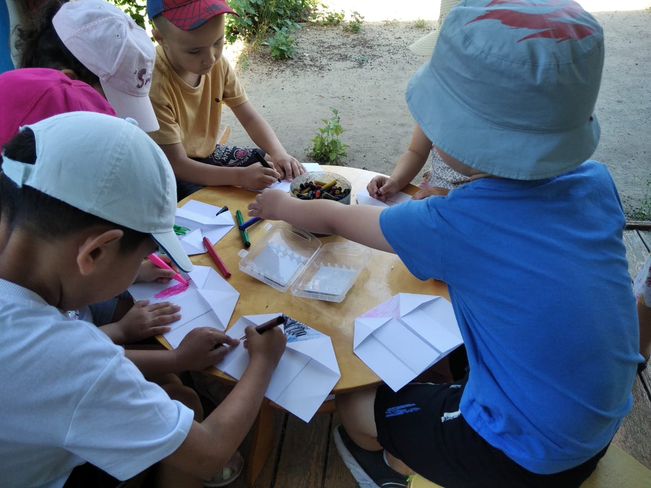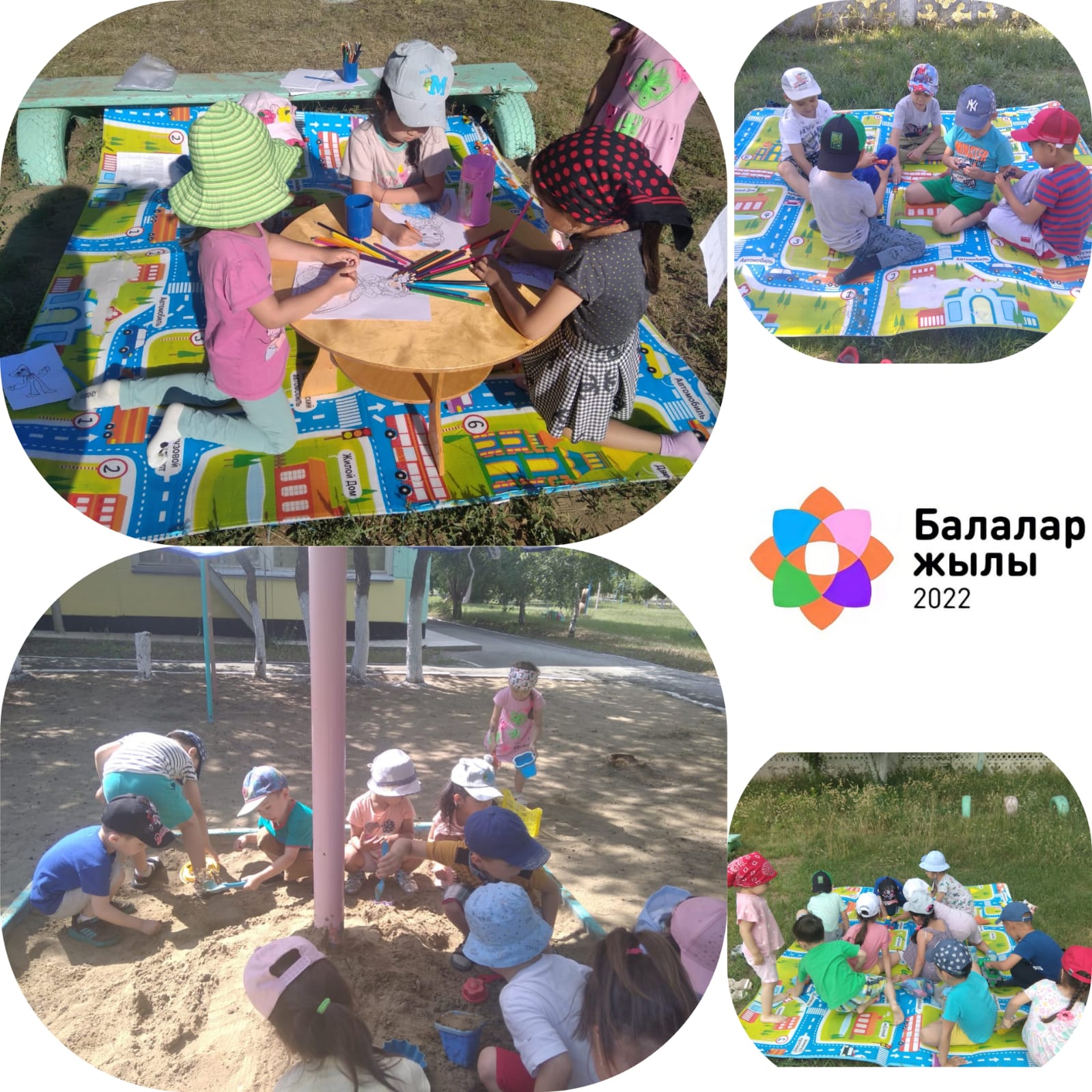 Жазғы жоспар бойынша «Ертегі» , «Қуаныш», «Верблюженок» тобының бүлдіршіндерімен «Шығармашылық» апталығы өткізілді.Балалар далада құммен әр түрлі пішіндер,түрлі боямақтар бояды. Сонымен қатар ,балалар қызықты түрде жаңа білім алып ,шығармашылық қабілеттерін ашты,белсенді және дербестік болды.