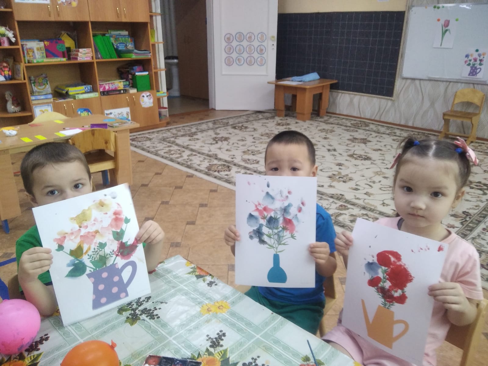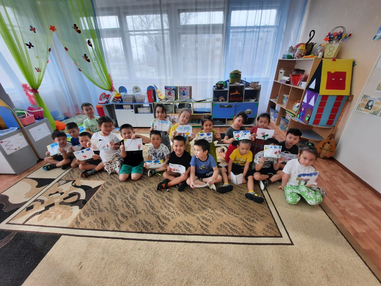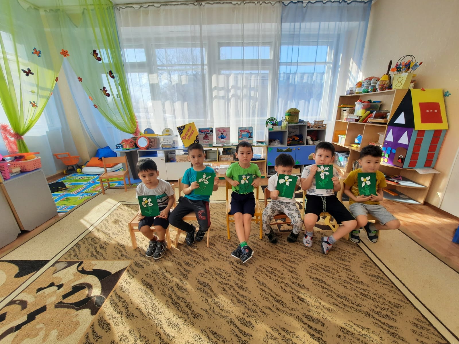 12.03.2024 ж «Күн сәулелі» жобасы аясында әр түрлі жастағы «Ертегі» тобында "Қызғалдақ гүлін" жапсырды.