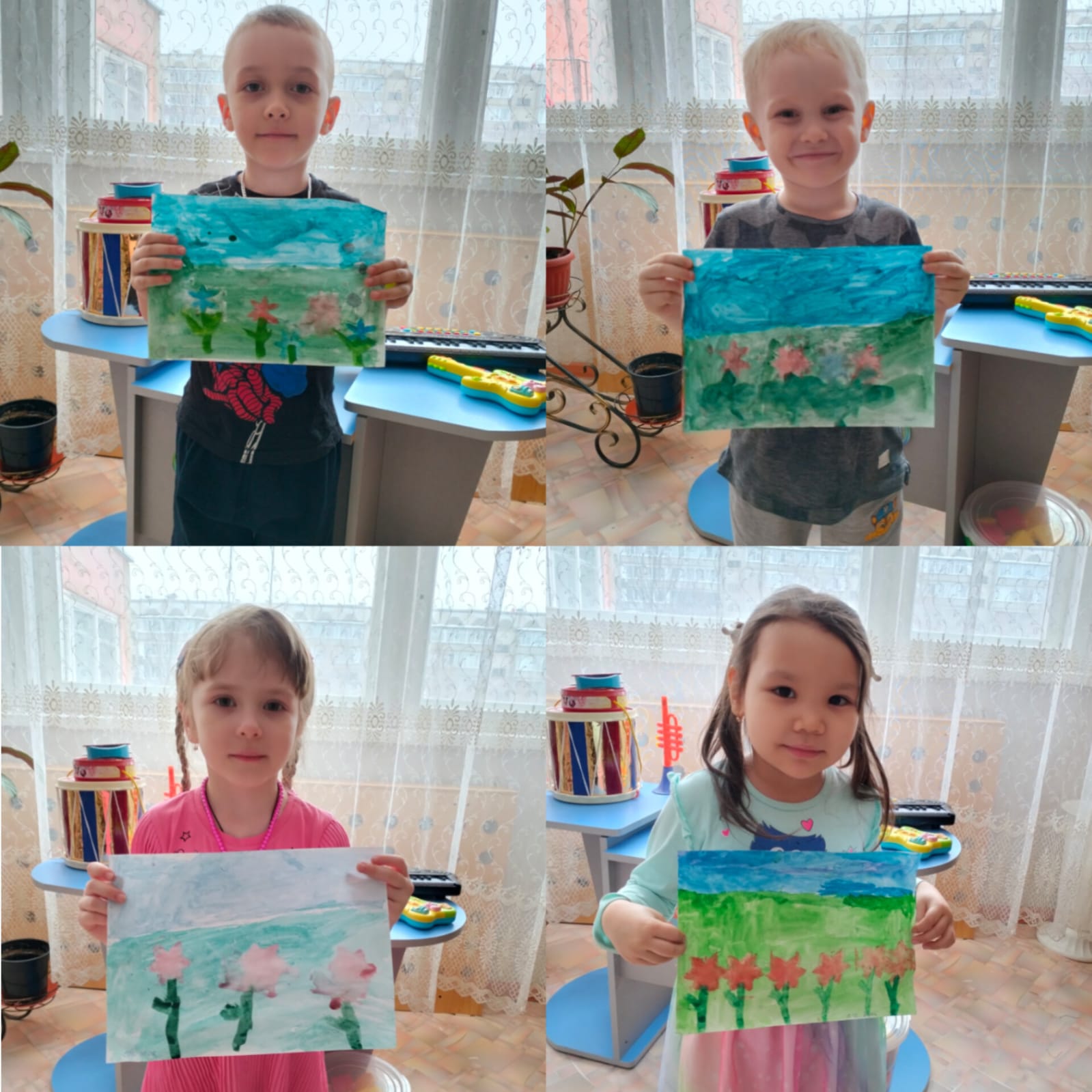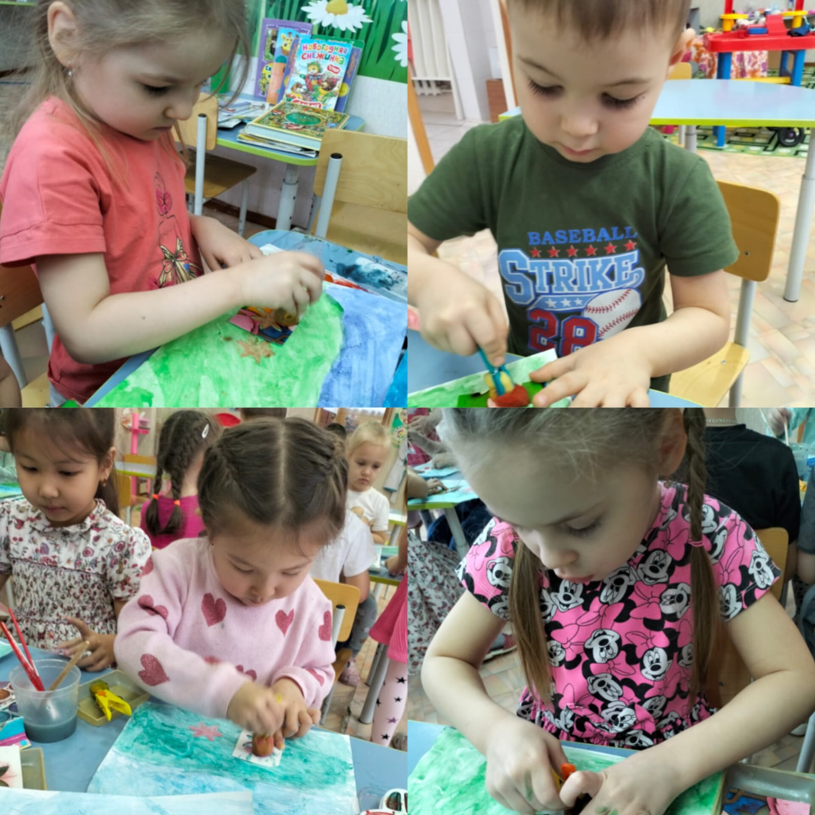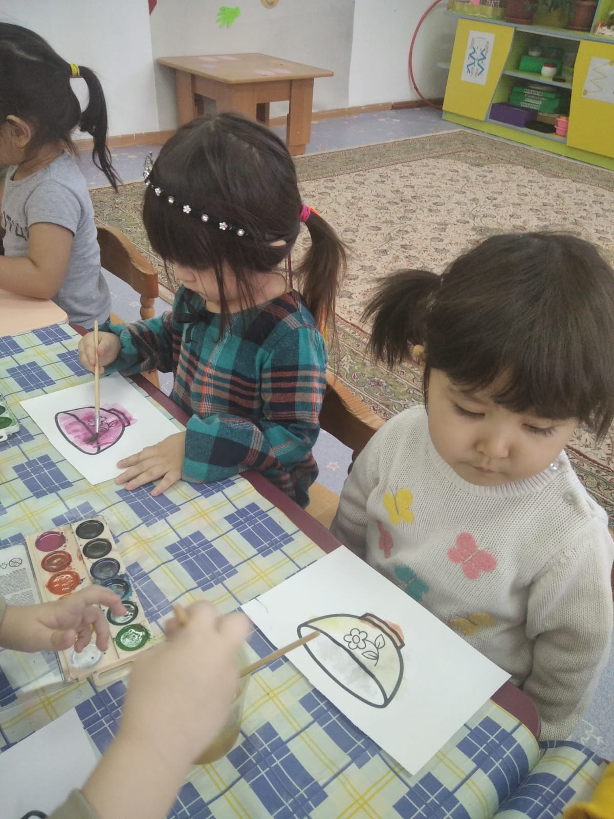 12.03.2024 ж «Күн сәулелі» жобасы аясында әр түрлі жастағы «Ертегі» тобында "Қызғалдақ гүлін" жапсырды.