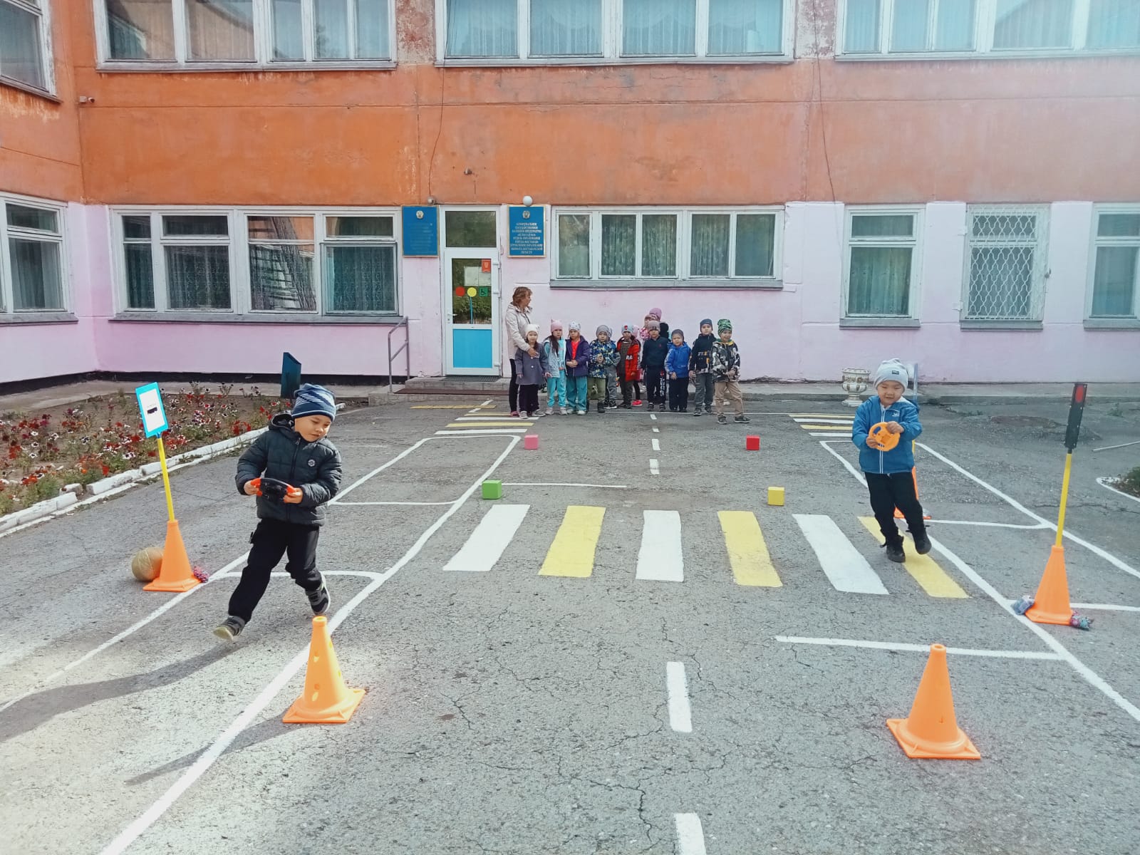 15 қыркүйек күні балабақшамызда Жол жүру ережесі бойынша «Қала көшелеріндегі қауіпсіздік» атты іс-шара өтті. Іс-шараның мақсаты: балалардың танымдық және ойын әрекеттерін ұйымдастыру арқылы жол жүру ережелері туралы білімдерін бекіту. Балалар «Бақылаушы», «Көңілді автобус», «Жүк көлігі», «Өткір бұрылыс» эстафетасында Жолда жүру ережелері, жол белгілері, қоғамдық көлікте жүру дағдылары туралы білімдерін бекітті.Олар қозғалыс рөлін ойнады. бақылаушы, жаяу жүргіншілер, жүргізушілер. Нұсқаушы: Исмагулова Э.Б.