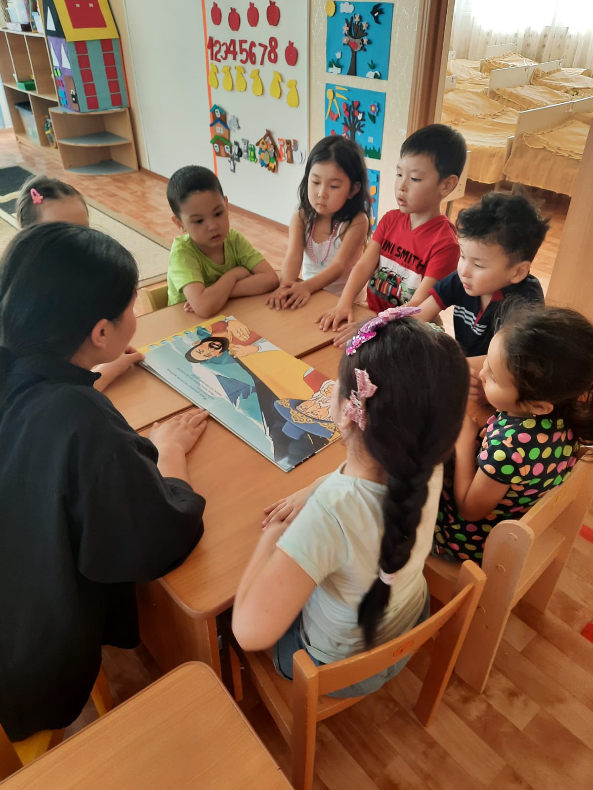 «Тілге бойлау» пилоттық жобасының аясында ересек «Ботақан» тобы балалардың жасына және жеке қажеттіліктеріне бейімделген жүйелі, жоспарлы және мақсатты түрде мектеп сағаттарында қазақ тілін оқытудан өтеді. Негізгі сөздік қорын дамытуға және алынған білімді бекітуге ерекше назар аударылады.