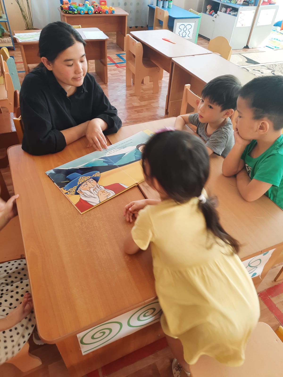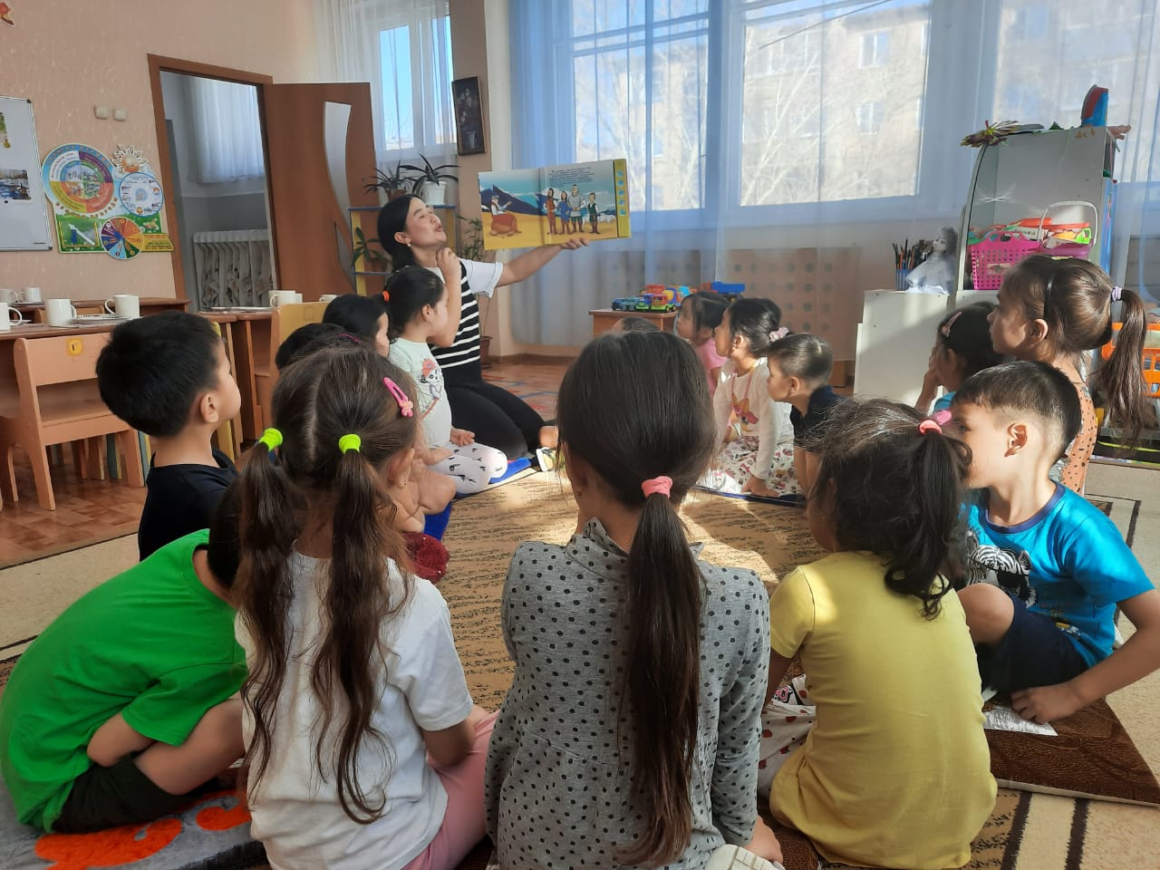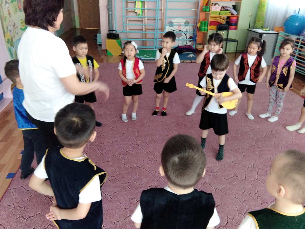 18.03.24 Ел іші - өнер кеніші аясында" Әртүрлі"Ертегі" тобында" Балалар қазақ халқының негізі музыкалық аспабы домбыра туралы таныс болды.Домбыра біздің ұлттық аспабымыз екенін,оны әрбір қазақ баласы және қазақ шаңырағында қастерлеп,төрге іліп ұрпаққа жалғастырушы ретінде сақтап келген өнер киесі екенін білдіру. Қазақтың ұлттық өнеріне ұлтжандылыққа тәрбиелеу.Тәрбиешілер: Ергалиева Б.Г.,Есенеева М.Б.