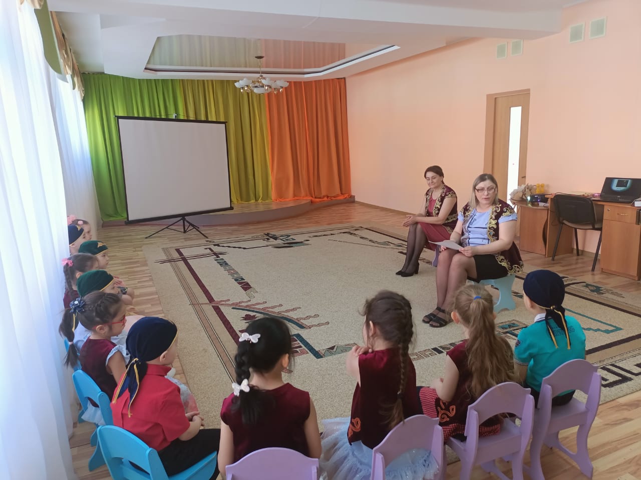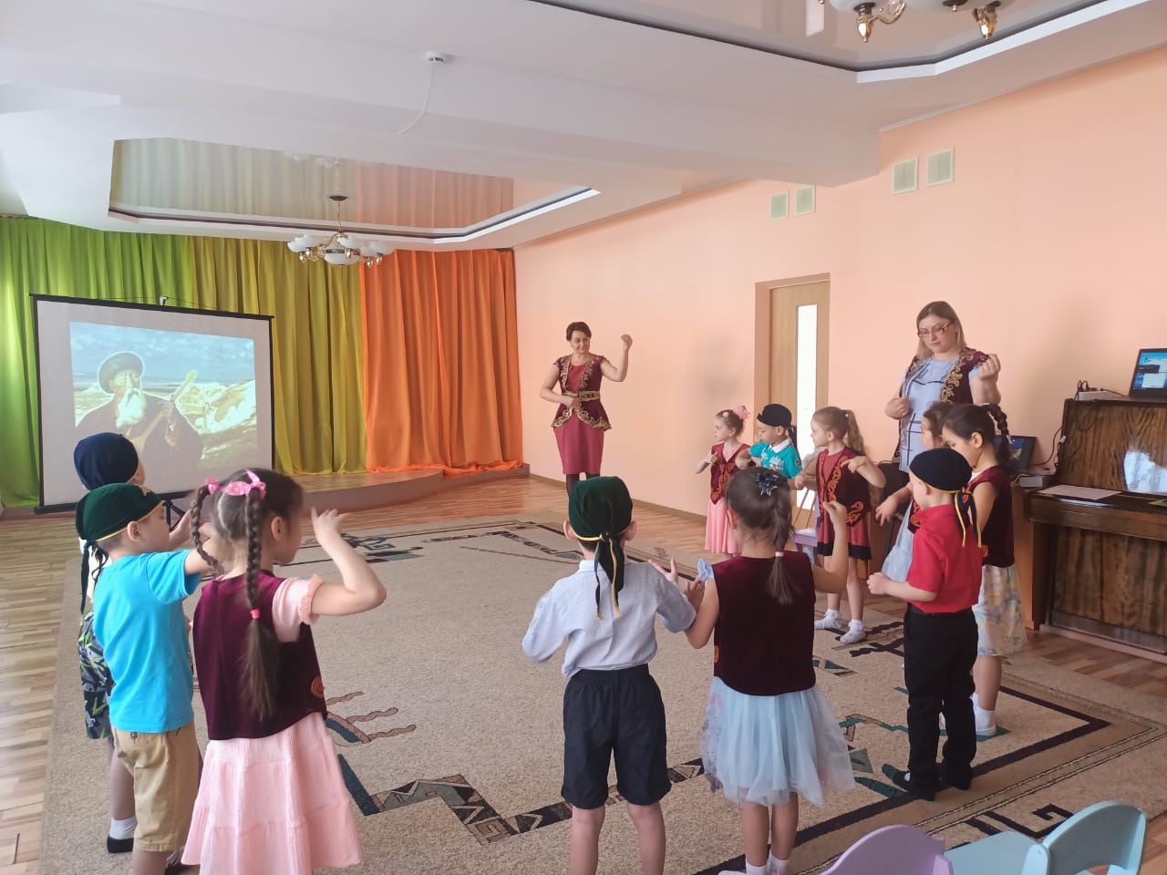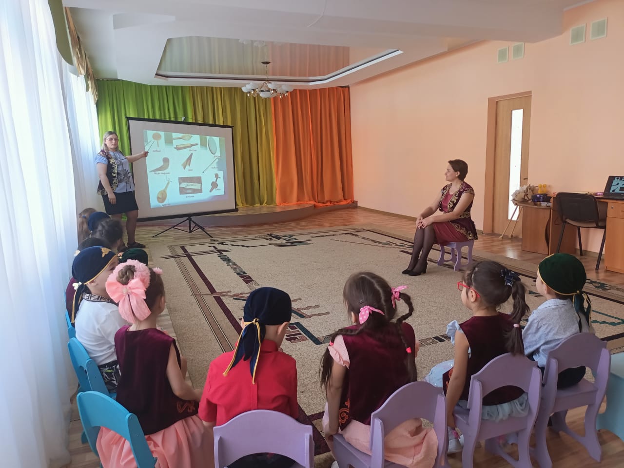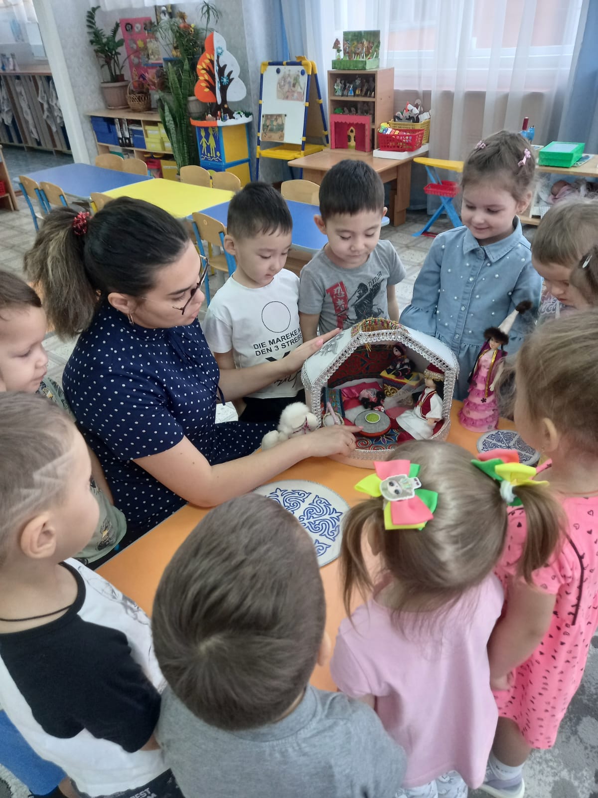 18.03.24 Ел іші - өнер кеніші аясында" Әртүрлі"Ертегі" тобында" Балалар қазақ халқының негізі музыкалық аспабы домбыра туралы таныс болды.Домбыра біздің ұлттық аспабымыз екенін,оны әрбір қазақ баласы және қазақ шаңырағында қастерлеп,төрге іліп ұрпаққа жалғастырушы ретінде сақтап келген өнер киесі екенін білдіру. Қазақтың ұлттық өнеріне ұлтжандылыққа тәрбиелеу.Тәрбиешілер: Ергалиева Б.Г.,Есенеева М.Б.