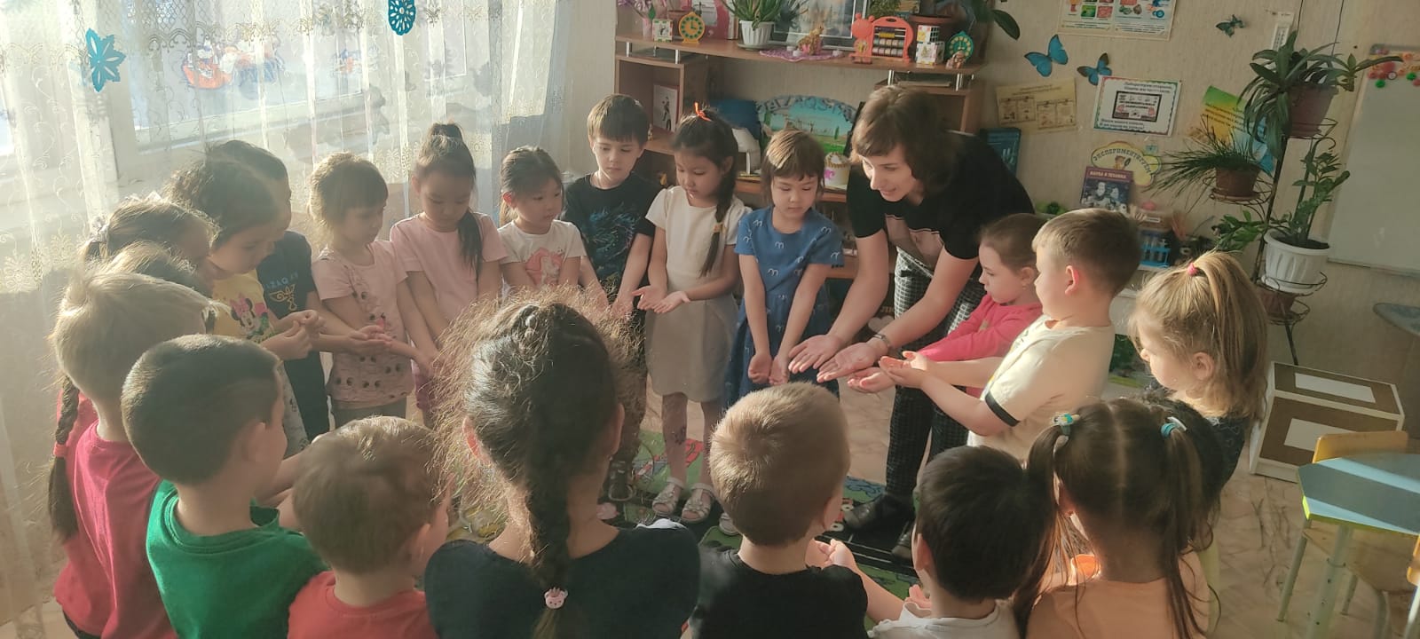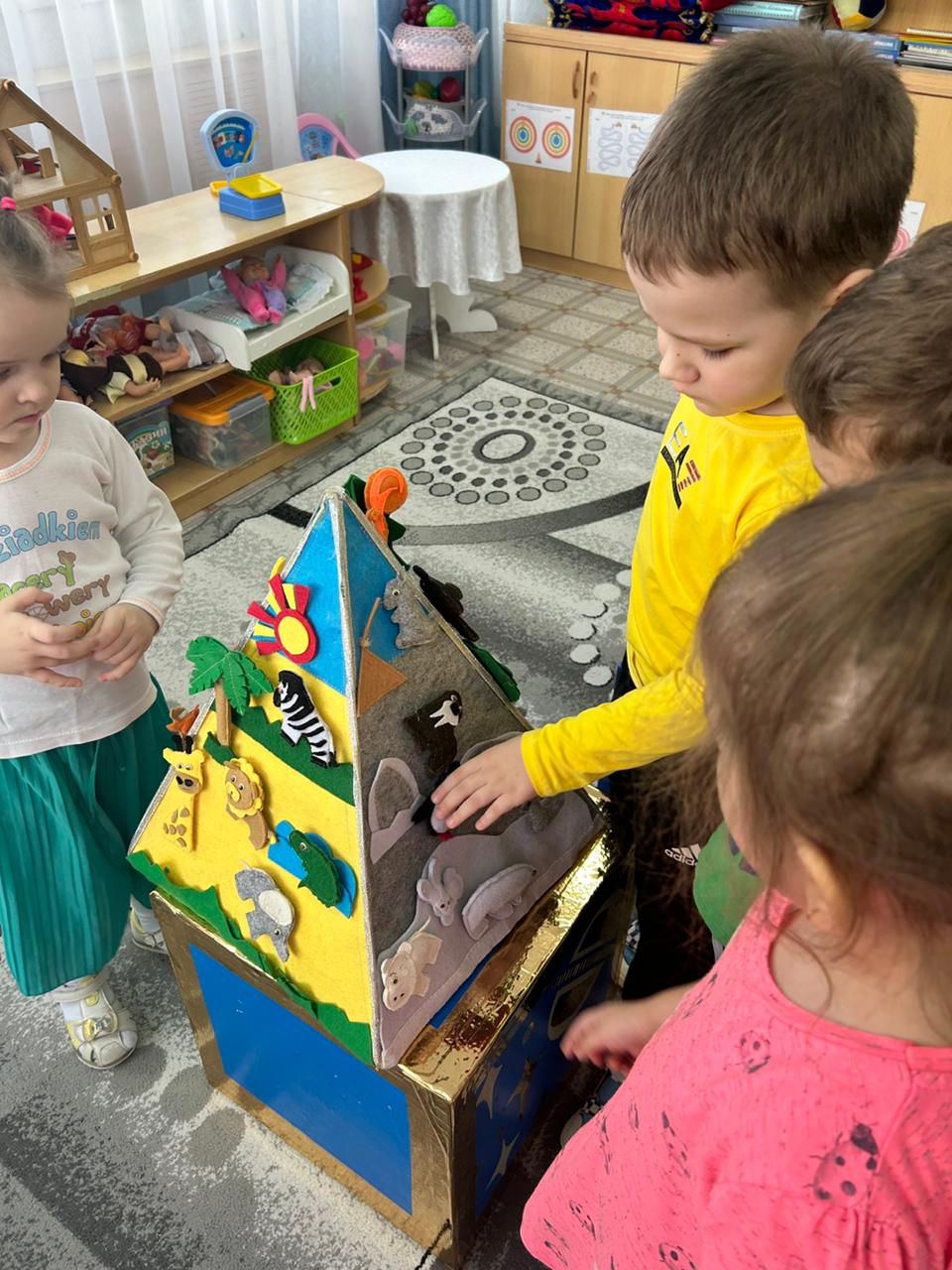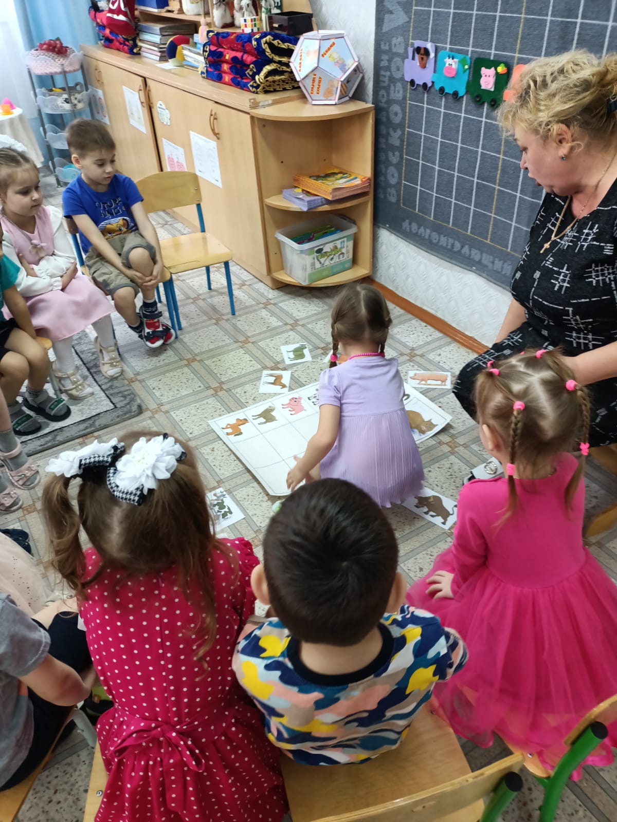 28.11.23ж «Ромашка» ересек тобында балаларды үй жануарларының тіршілігін танып-білу әлеміне тартатын ойын іс-шарасы өткізілді. Ойын жағдайындағы балалар ұсынылған мәселені шешуде дәлелдеді, айтысып, ортақ пікірге келді. Заманауи педагогикалық технологияларды қолдану балалардың танымдық іс-әрекетін дамытуға ықпал етіп, балалардың білуге құштарлығын арттырады. Тәрбиеші: Калашникова Л.И.