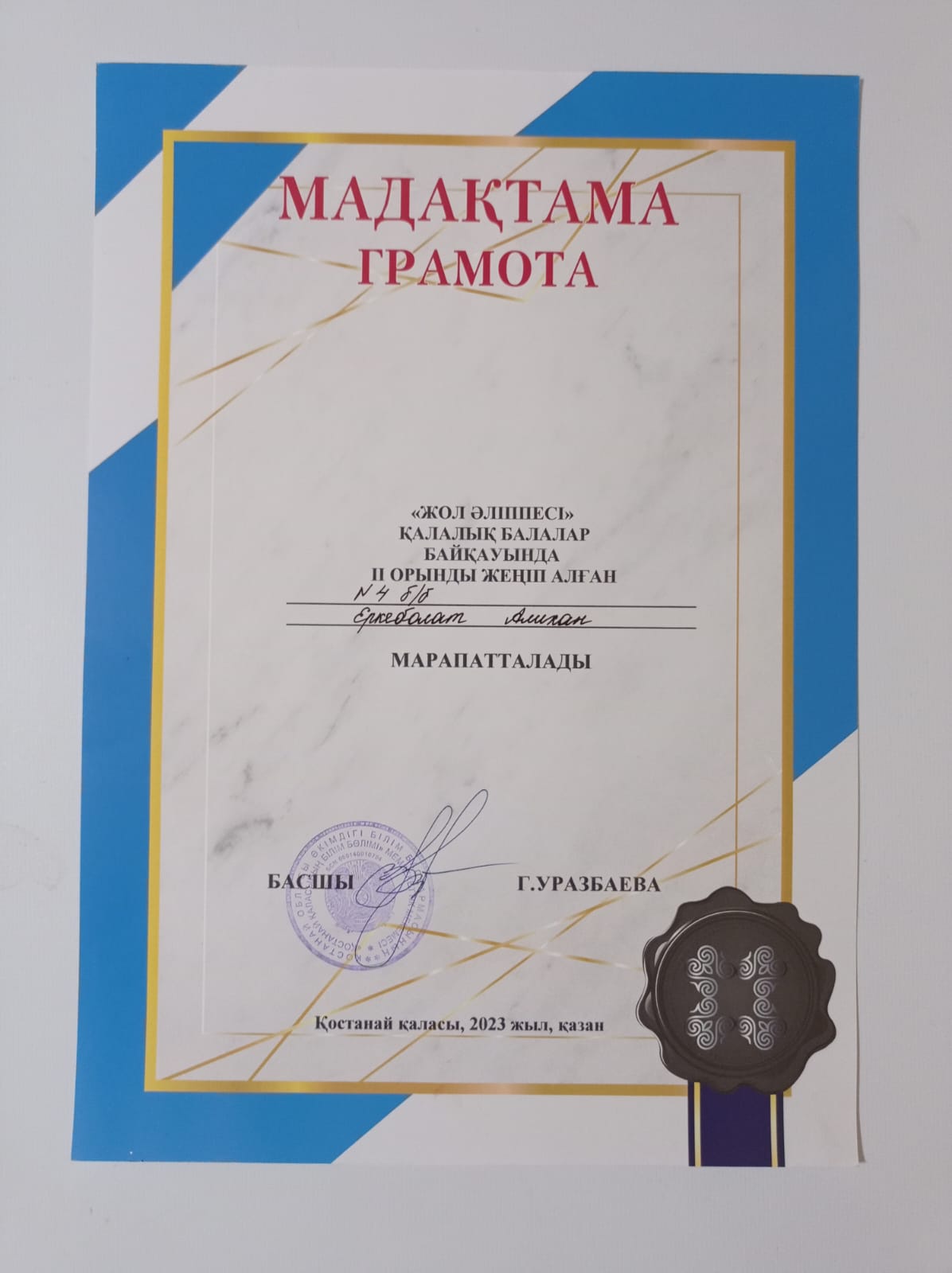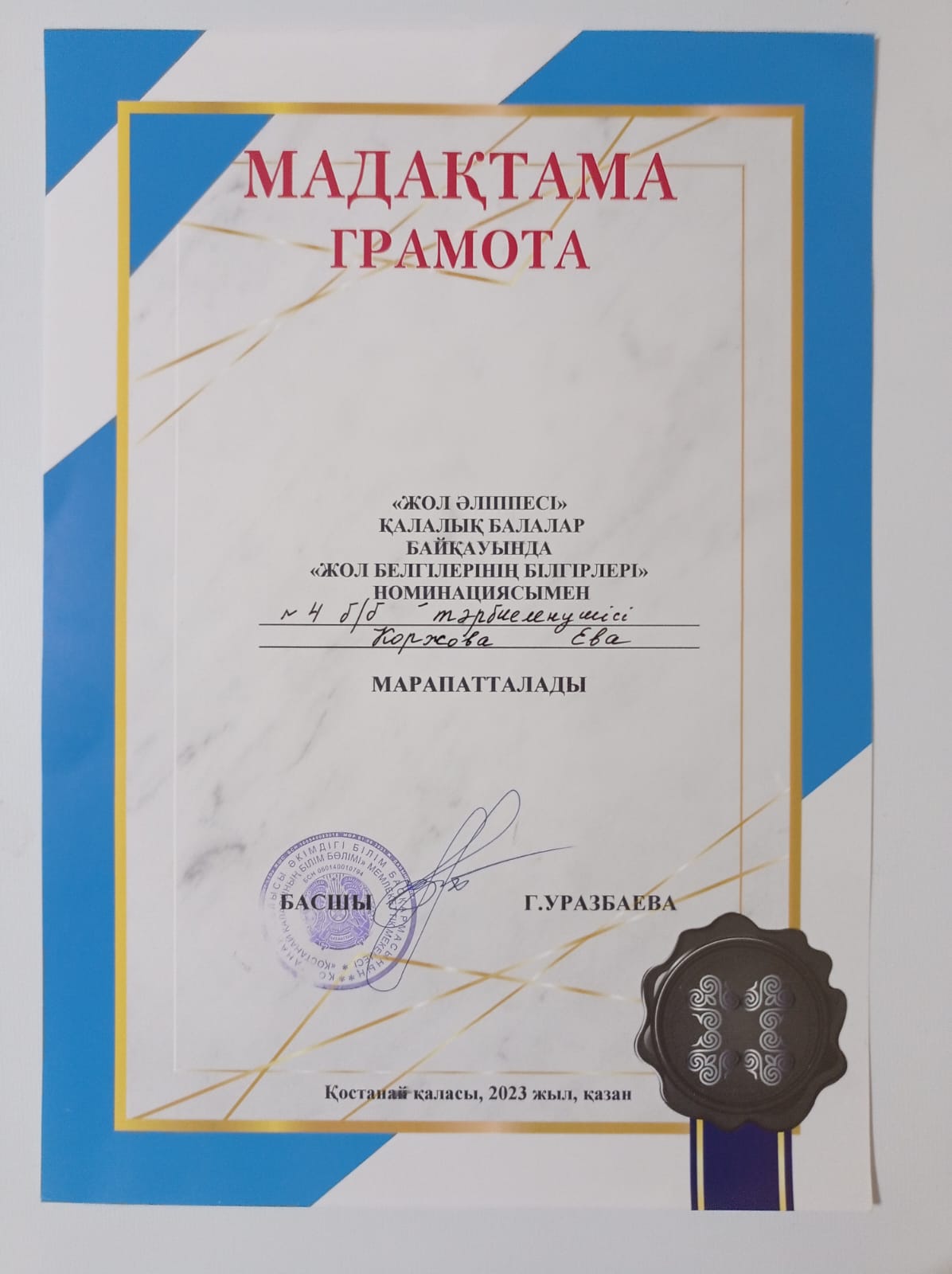 Балабақша тәрбиеленушілері Коржова Ева және Еркеболат Алихан «Жол әліпбиі» балалар байқауына қатысты.