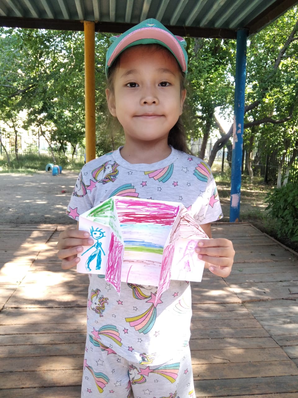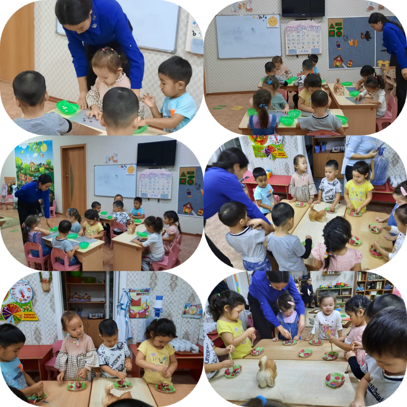 «Анам,әкем мен тату отбасымыз» атты ұранымен бұлдіршіндермен өз сүйікті үйлерін құрастырып бояды. Бір отбасындағы адамдар арасындағы тату қарым-қатынасты қалыптастыру.Отбасына байланысты сөздермен сөздік қорлатын байытты. Өлең-тақпақтар, мақал- мәтелдер үйрету арқылы ой-өрістерін , тілдерін дамыту.Бір-біріне қамқор болуға, өз отбасын мақтан ету жолын қолданады.