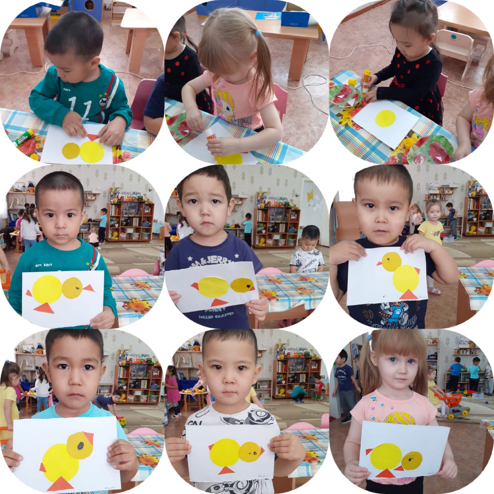 Мақсаты: Үй құстары туралы білім беру, балапанның қайдан шығатыны туралы түсініктерді қалыптастыру, желіммен жұмыс жасау арқылы жапсыру дағдыларын қалыптастыру және ұқыптылыққа тәрбиелеу.Тәрбиеші: Садвакасова Ш.Р.
