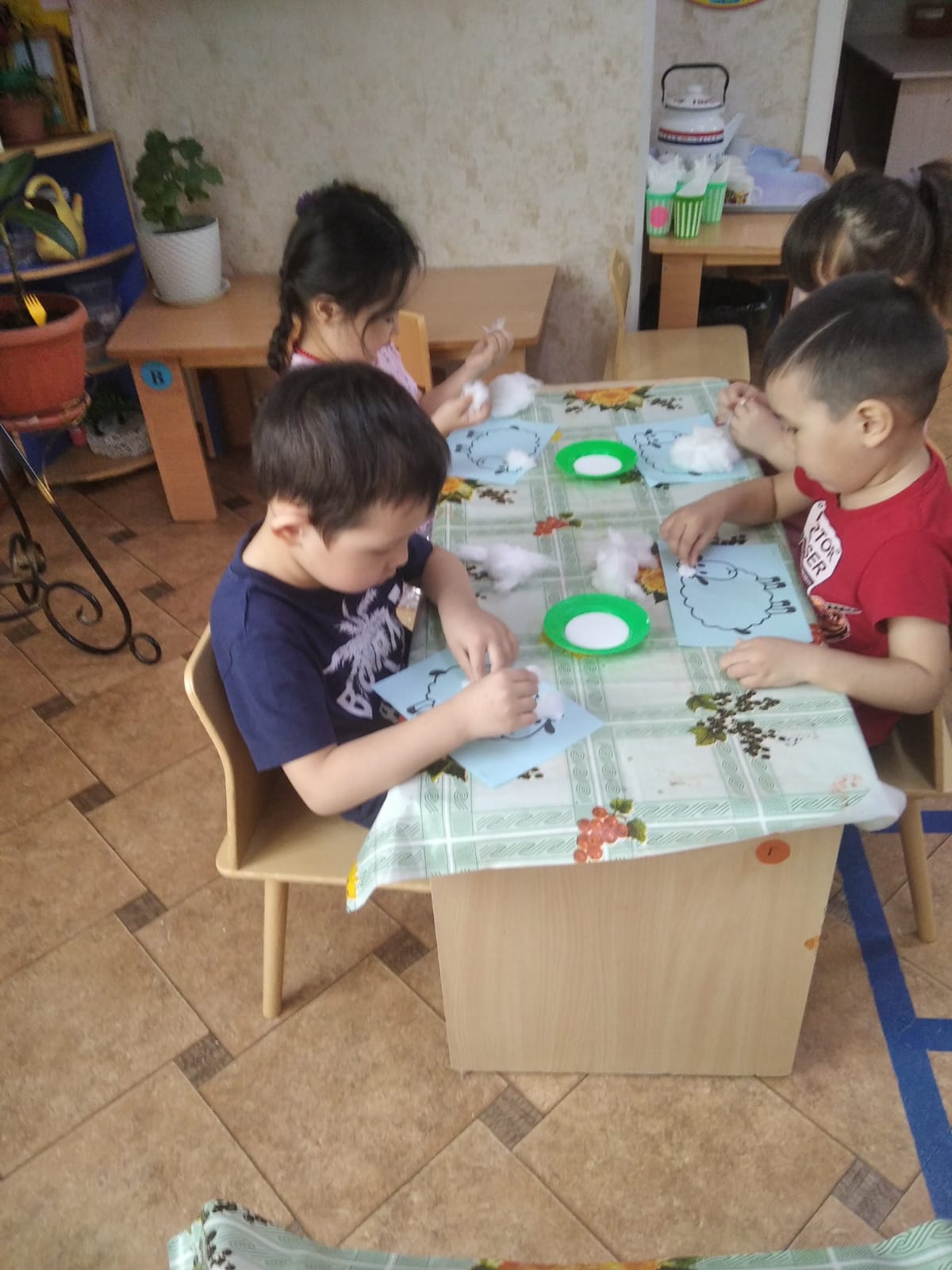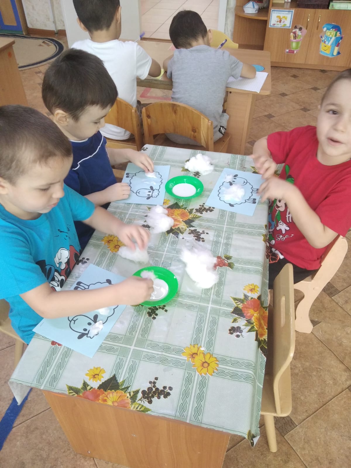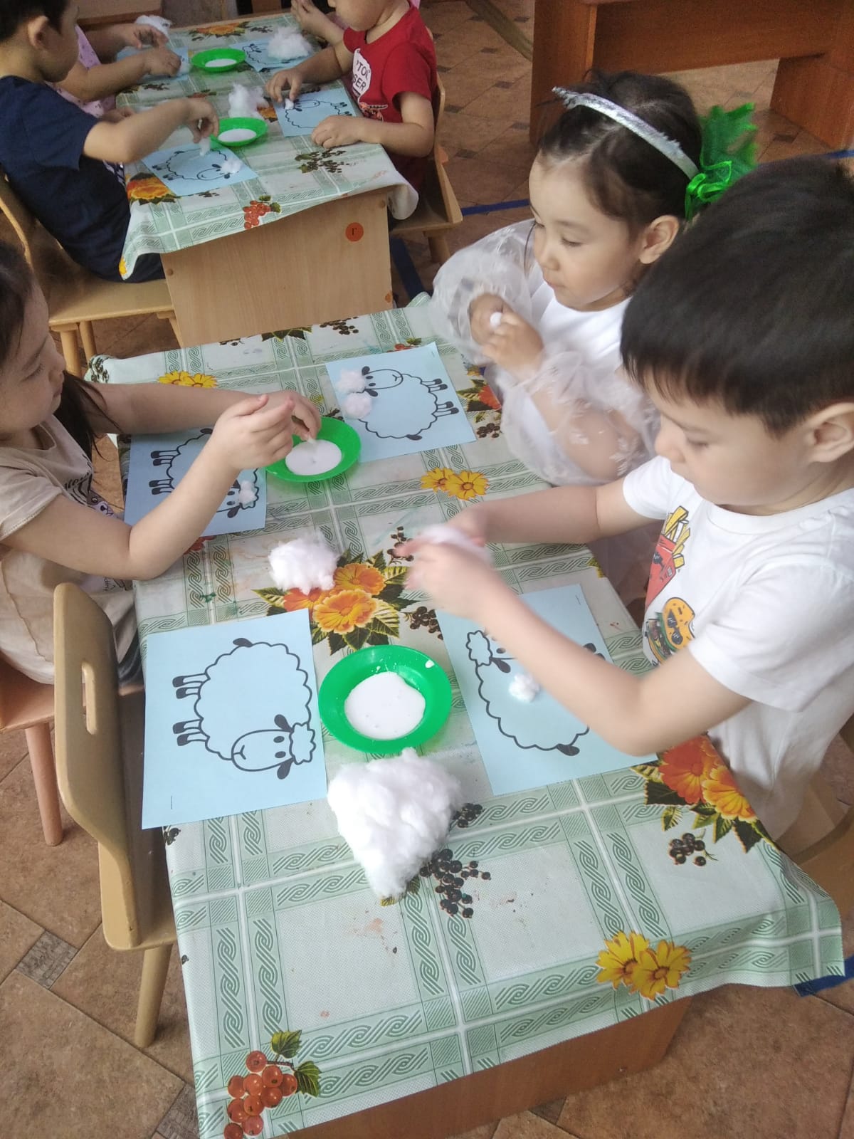 Мақсаты: Мақта таяқшаларымен сурет салу процесіне қызығушылық пен жұмыстан қанағаттану сезімін ояту.