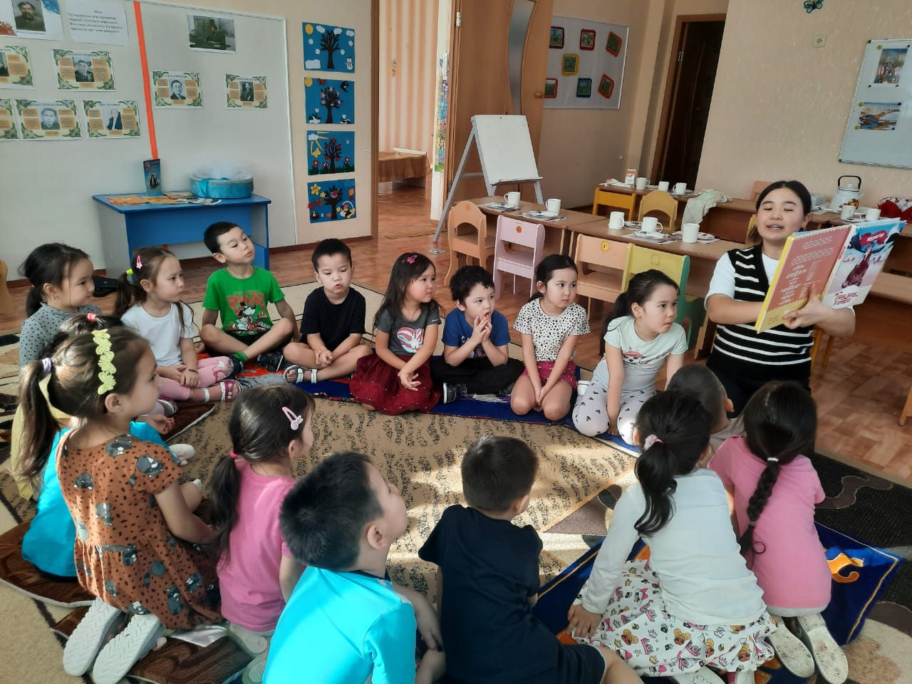14.02.2024 ж Әр түрлі жастағы «Ертегі» тобында «Мақал-сөздің азығы, жұмбақ – ойдың қазығы» атты ойын сауық өтті. Мақсаты: балаларға халқымыздың сөз өнері: мақал-мәтел, жұмбақ, жаңылтпаштардың мағынасын ұғынып, өз ұлтына деген құрмет пен сүйіспеншілікке тәрбиелеу.Тәрбиешілер: Ергалиева Б.Г.,Есенеева М.Б.