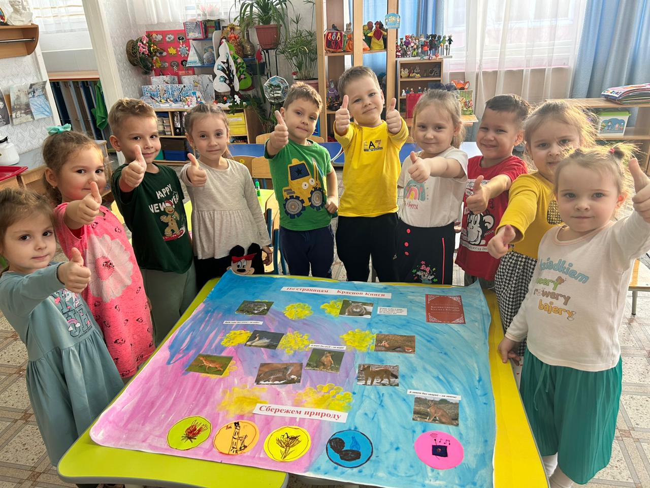 14.02.2024 ж. 13-14 ақпанда «Ромашка» ересек тобында «Күн сәулелері» жобасы және табиғатты қорғау жоспарын жүзеге асыру шеңберінде «Біз ЭКО серіктеріміз: біз туған өлкеміздің флорасы мен фаунасын сақтаймыз» атты дамыту іс-шаралар акциясы өткізілді. Балалар Қазақстанның Қызыл кітабымен танысты. Балалар Қызыл кітапқа енген жануарлар мен өсімдіктерді танып, атады. Туған табиғатымызды сақтау туралы постер жасауға шығармашылықпен қарады. Тәрбиешілер: Калашникова Л.И. Макаева К.В.