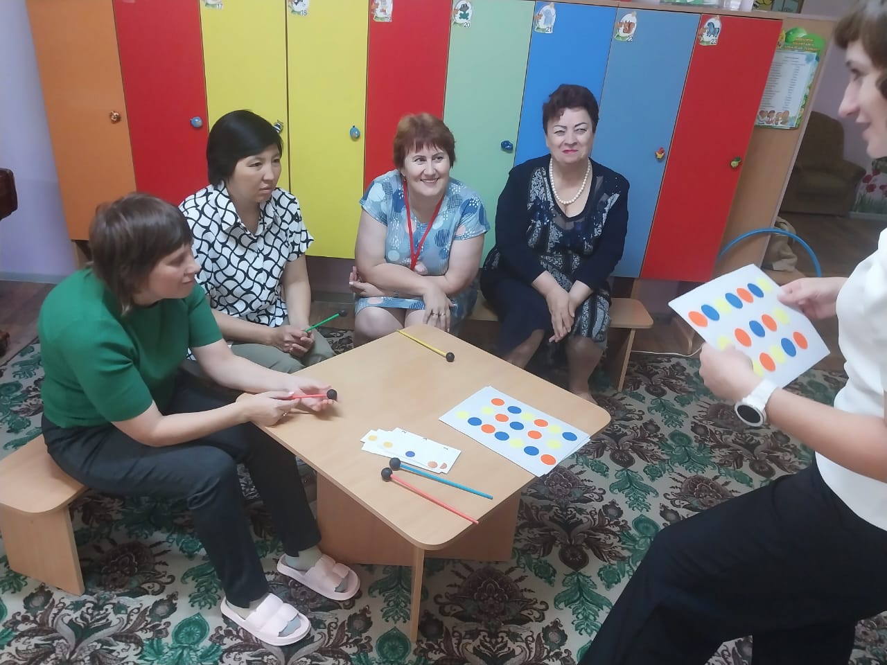 15.08.2024 ж. Мектепке дейінгі ұйымдар педагогтарының облыстық тамыз секциясын өткізу шеңберінде: "Жасанды интеллект дәуіріндегі баланың танымдық және мәдени салауаттылығы" №4 бөбекжай-бақшасы "Мектепке дейінгі ұйымда ерекше білім беру қажеттіліктері бар балалармен жұмыс істеудегі инновациялық тәсіл"тақырыбы бойынша жұмыс тәжірибесін жинақтауға белсенді қатысты. Педагог-психолог Е. С. Каткенова және логопед-мұғалім Е.В. Шамшина "Асылтас"нейропсихологиялық ойындар мен жаттығулар кешенін ұсынды. Балалармен жұмыста сөйлеу және танымдық дағдыларды дамыту бойынша кешенді қолдану бойынша практикум өткізілді.