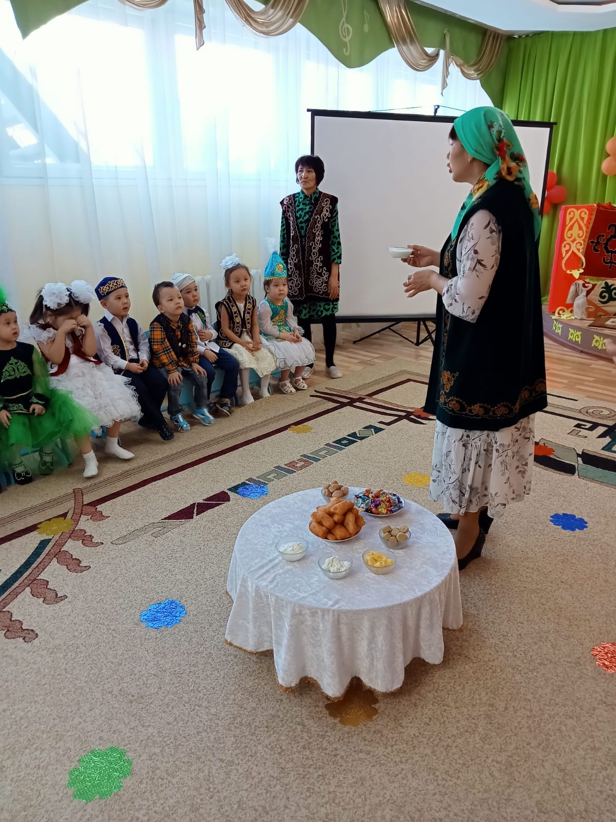 2024 жылдың 12 наурызы «Жұлдыз» тобы. «Наурыз мейрамы» аясында «Ұлттық тағамдар күні». Ұлттық тағамдармен, олардың жасалу тарихымен және дәстүрімен танысу, ата-аналардан шеберлік сабақтары, аспаздық тақырыптар бойынша ойындар мен сайыстар. Бұл балаларға мәдениеттер мен дәстүрлердің сан алуандығын білуге ғана емес, сонымен қатар өз елінің аспаздық мұрасын құрметтеуге және бағалауға да көмектеседі.