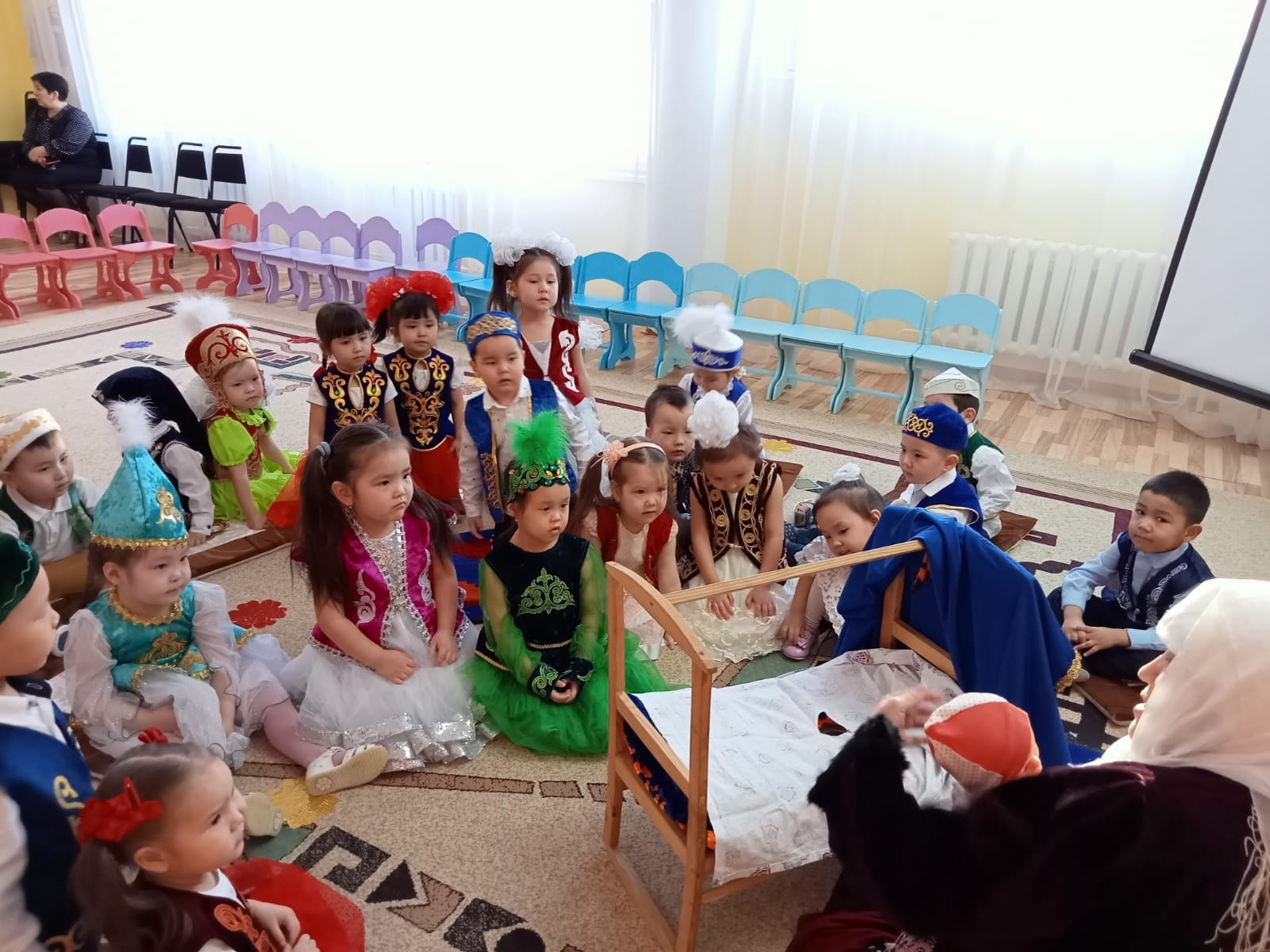 15.03.24ж "Ғылым күні" .Балалардың зияткерлік әлеуметін дамыту мақсатында әр түрлі жастағы "Ертегі" тобында Наурыз мерекесі туралы тақырыптық әңгімелер өткізілді. Қазақ халқында балалардың ой-санасын жетілдіру, зияткерлік қабілетін дамытуда ауыз әдебиетінің алар орны ерекше. Батырлар жыры балаларды Отан сүйгіштікке, адалдыққа, ерлікке тәрбиелесе, шешендік өнер табан астында сөз тауып айтуға, аталы сөзге тоқтауға үйретеді. Қарап тұрсақ Зияткерлік күнін осындай аса бай мол мұрамызды пайдалану арқылы, қызықты ойындар өткізілді. Ұлыстың Ұлы күні қарсаңында халық ауыз әдебиетін жаңғыртып, жас жеткіншектерге рухани азық сыйлайық. Наурыз құтты болсын!