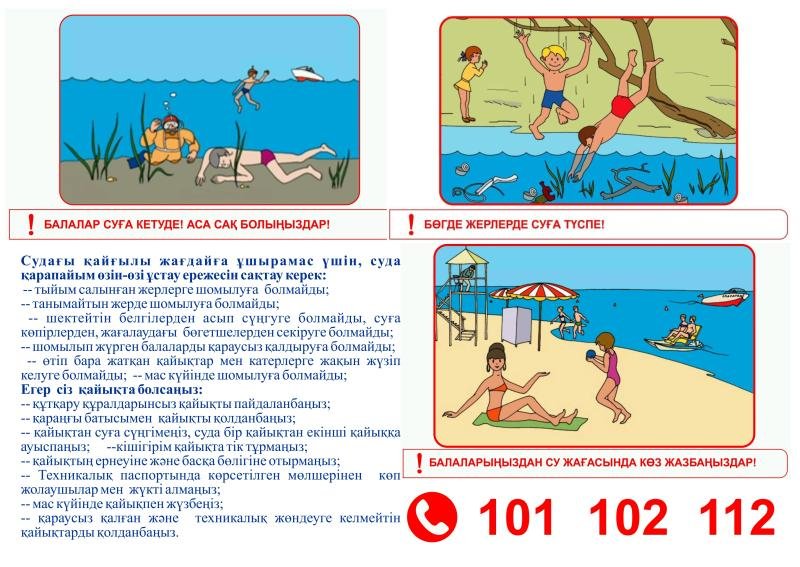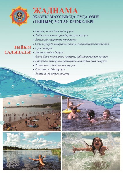 - Жүзу шекараларын белгілейтін буйкадан асып кетуге болмайды, жартастан немесе түбі белгісіз жерлерде суға секірмеңіз.