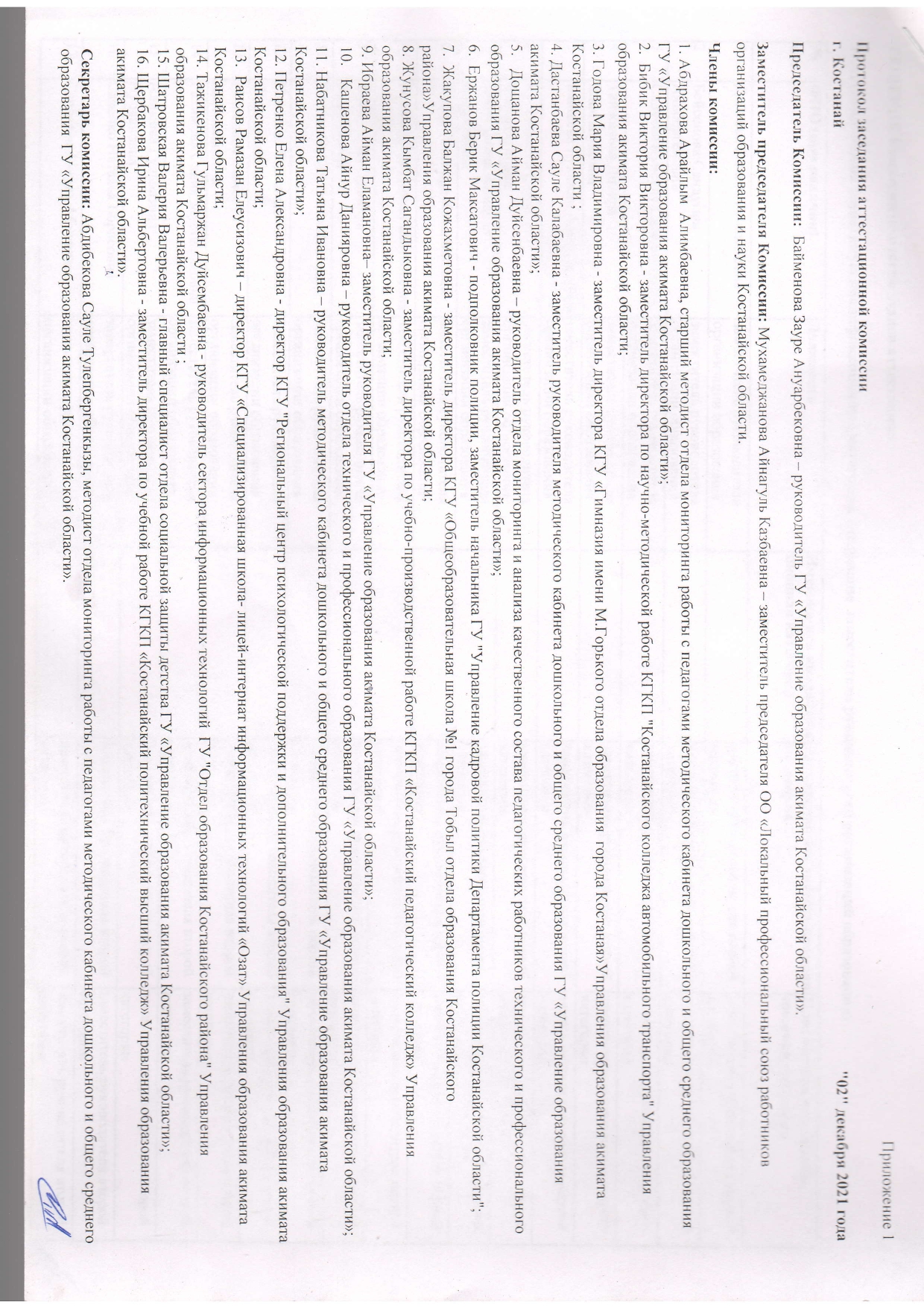Протокол заседания аттестационной комиссии