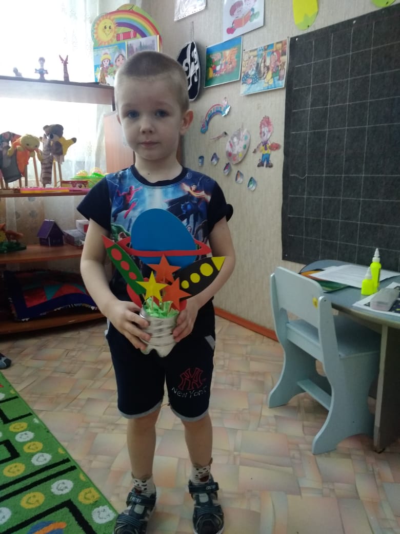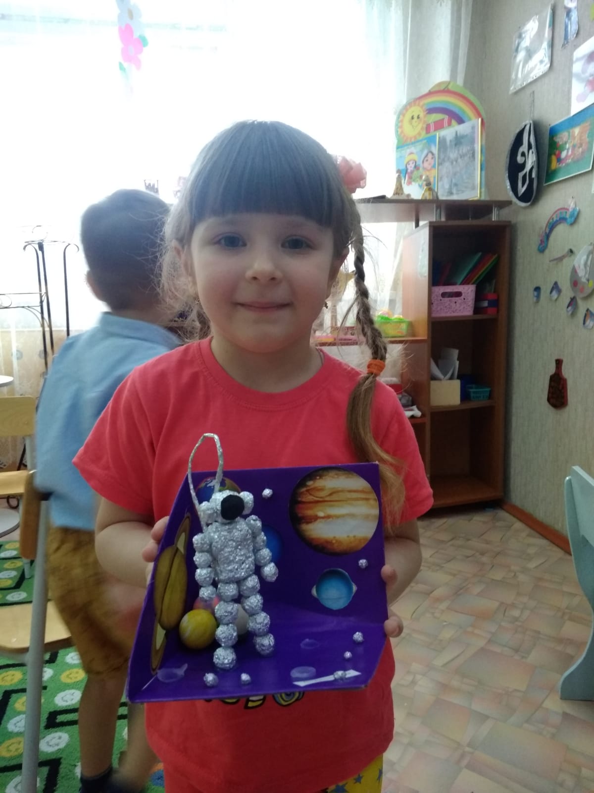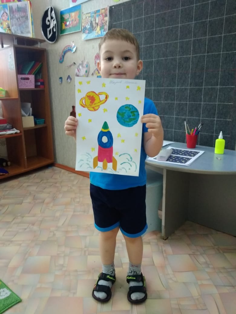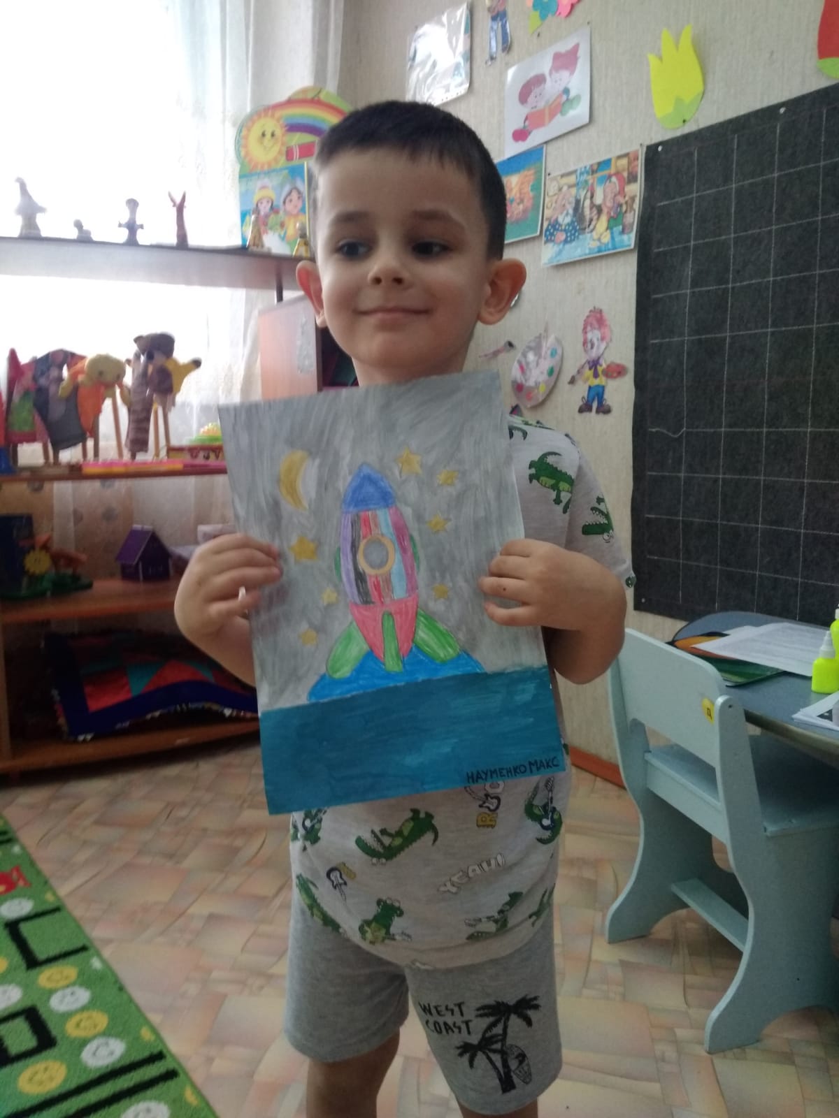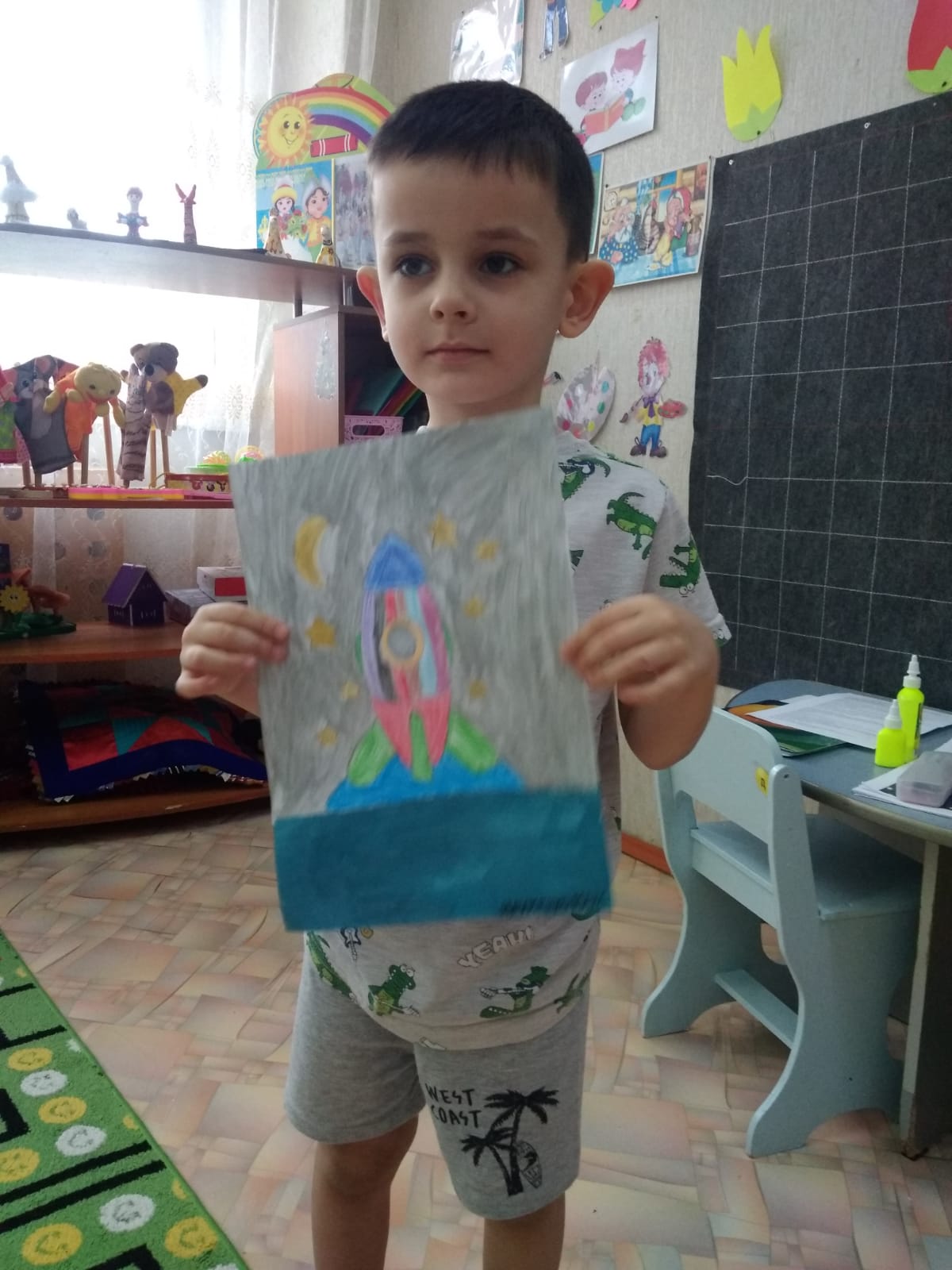 В группе "Нежность " прошло необычное мероприятие посвященное Космосу .Ребята узнали много интересного о планетах,о космонавтах и ракетах.В завершении этого мероприятия ребята выполнили аппликацию "Ракета",а дома вместе с родителями подготовили выставку "Дорога в космос" из рисунков и поделок Ребята и воспитатели получили положительные эмоции от взаимодействия друг с другом.Журман Н.М.