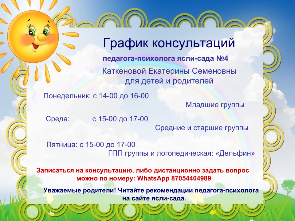 Уважаемые родители! По анализу анкет, у вас возникали вопросы, связанные с адаптацией и развитием вашего малыша! По желанию, приходите ко мне на консультацию, заранее предупредив об этом воспитателей!