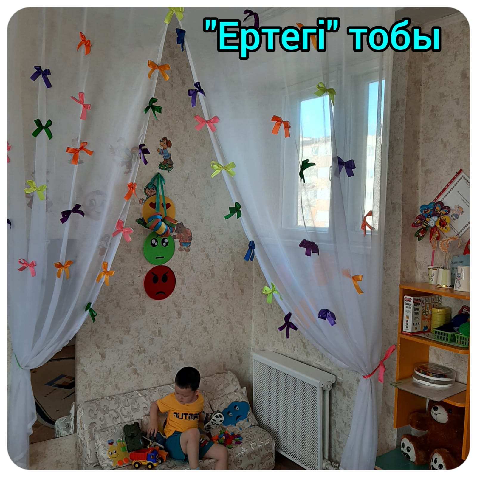 В нашем ясли –саде №4 группы предшкольной подготовки «Верблюжонок» проходит долгосрочный проект Центр уединения « Бақытты балақай» — это место, где ребёнок в детском саду может успокоится, расслабиться, поиграть с любимой игрушкой, рассмотреть фотографии, по игрушечному телефону ребенок может совершать воображаемые звонки маме или папе, сказать, что он их очень любит и ждет; или просто помечтать. Дети еще учатся контролировать проявления своих чувств. Поэтому нередко происходит демонстрация таких эмоциональных проявлений, как гнев, злость, грусть. В баночку для криков: если ребенок проявляет агрессию, или ему хочется просто покричать, он может пойти в уголок, взять баночку «Крикуха», и покричать в нее, т. е можно сказать, что ребенок в это время выпускает "пар". Ещё в «мишень злости «может покидать мешочки, тем самым выплескивая свою энергию. Обняв «подушку плакушу», ребенок может поделиться с ней своим настроением. В таком уголке ребенок может спрятаться от окружающих, выразить свои накопившиеся негативные эмоции, отвлечься от суеты с помощью интересных спокойных игр и просто отдохнуть в тишине.