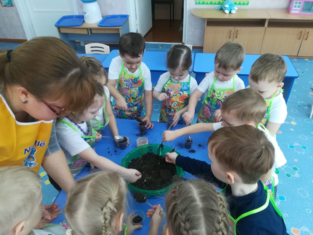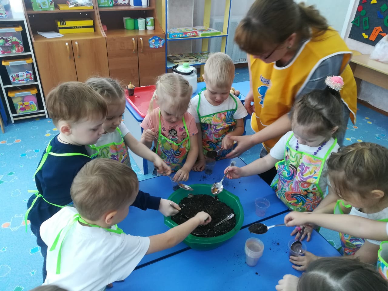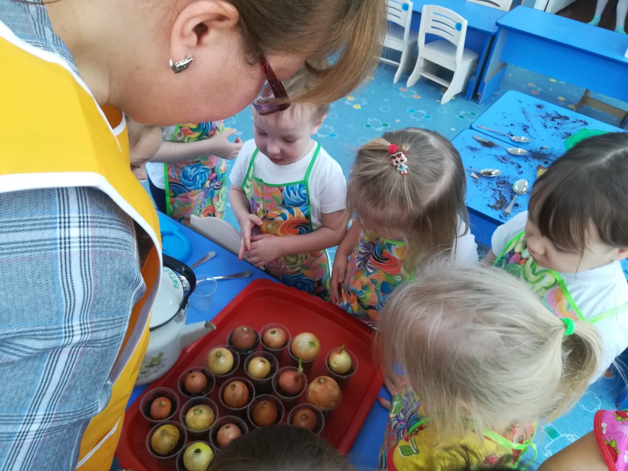 Лук от семи недуг, мы дружно посадили, а потом все дружно смотрели как растёт!